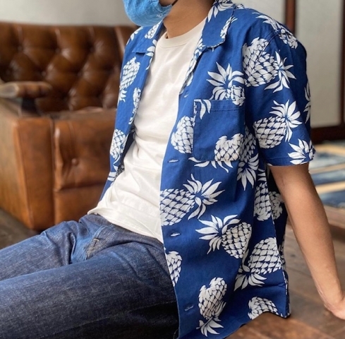 【SS新作】パイナップル柄抜染開襟シャツ