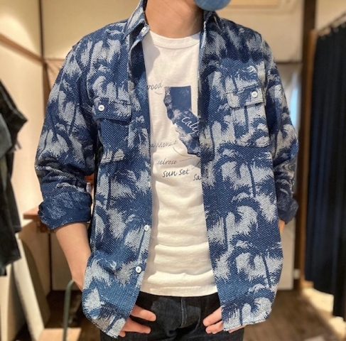 【SS新作】ヤシの木柄抜染ワークシャツ