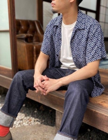 といことで本日は、『結び花柄インディゴ抜染ガーゼシャツ』をご紹介致します!