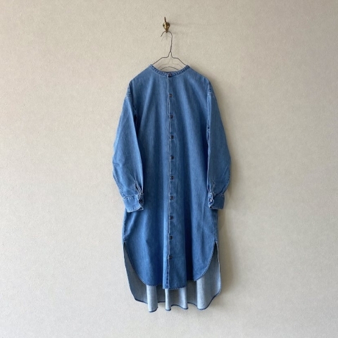 6ozライトデニムを使用したバンドカラー ワンピースの紹介です。