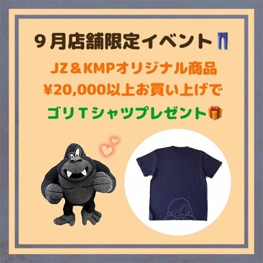 『JZ&KMPオリジナル商品を¥20,000以上お買い上げで、ゴリTシャツ(ネイビー)プレゼント』