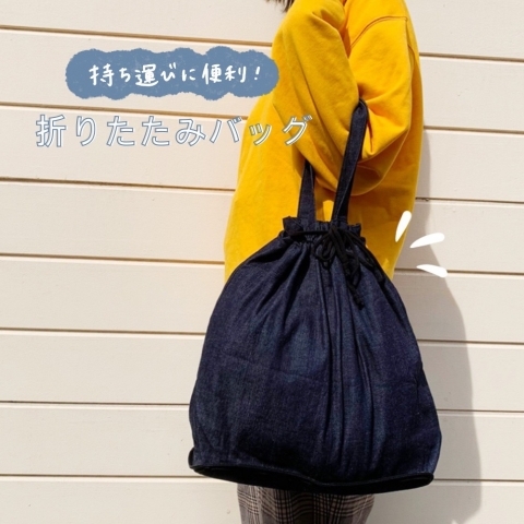 日々のお買い物に便利な【折りたたみデニムバッグ】