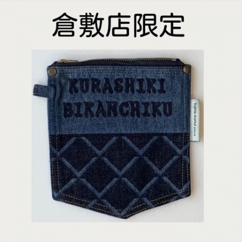 児島ジーンズストリートのロゴや瀬戸大橋の柄が入った児島店限定商品と