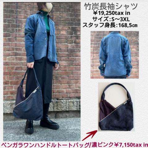 倉敷市真備町の竹炭で染めたメンズの長袖シャツ。