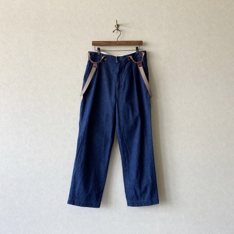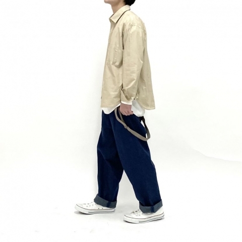 トップスをインしてサスペンダースタイルを楽しむもよし、サスペンダーを取り外してデニムパンツやチノパンとして着用するも良しの、コーディネートの幅が広がるアイテムになっています。