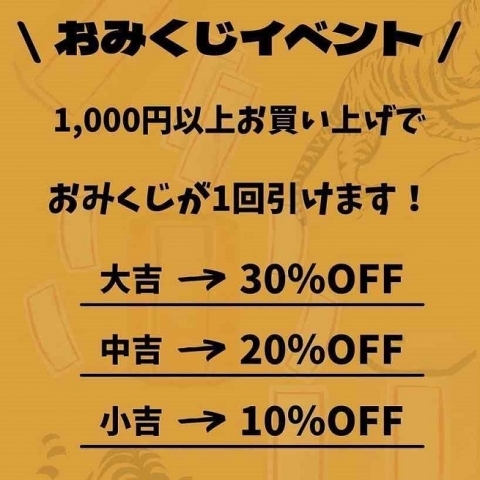 ¥1,000以上お買い上げ頂いたお客様におみくじを引いて頂いて、その場で割り引きさせて頂きます。