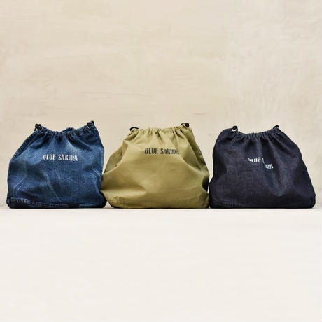 BLUE SAKURAより、デニムを使ったDRAWSTRING BAG<巾着袋>の登場です。