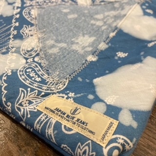 デニムバンダナ柄のインディゴ生地を使用した