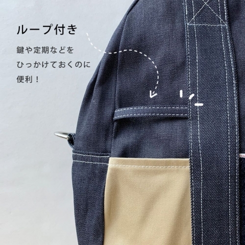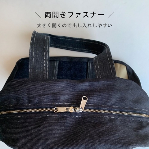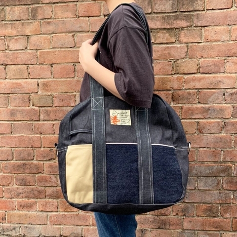 大きめデニムバッグ【縦長配色ボストンバッグ】