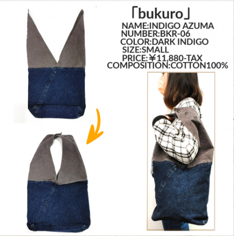 丈夫な帆布をインディゴで染めた「bukuro」のバッグです。
