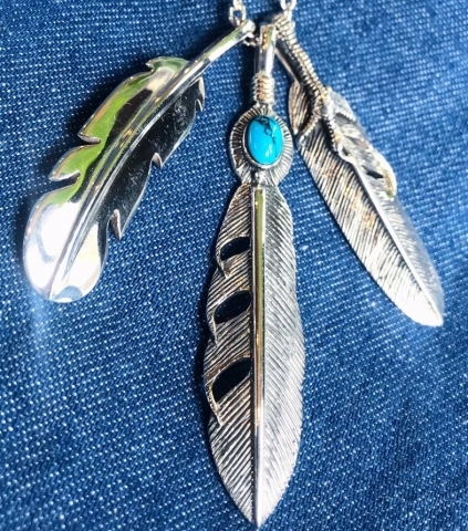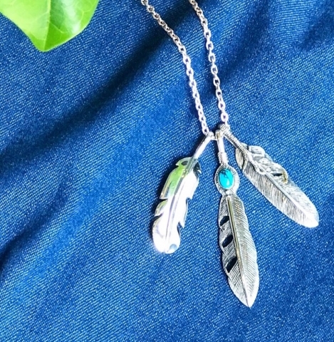 3つを組み合わせたフェザーペンダント。