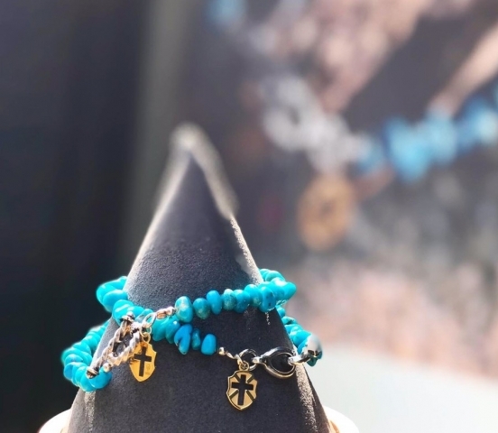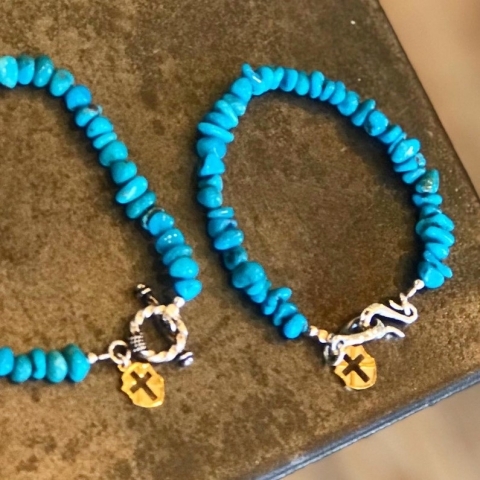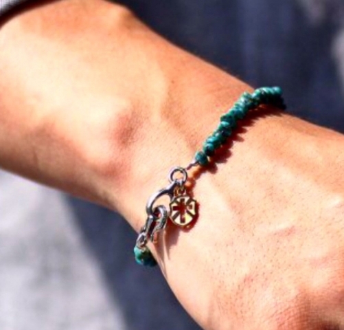 天然石の中でも人気のターコイズを使用したハンドメイドブレスレット。