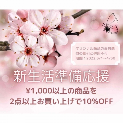 『新生活準備応援』¥1,000以上の商品を2点以上お買い上げで10%OFF