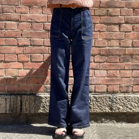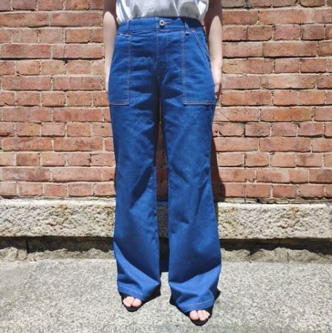 ウエスト後部がゴム製、フロントボタンも飾りなのでスルッと穿ける楽々パンツです。