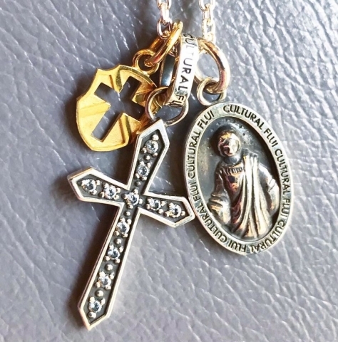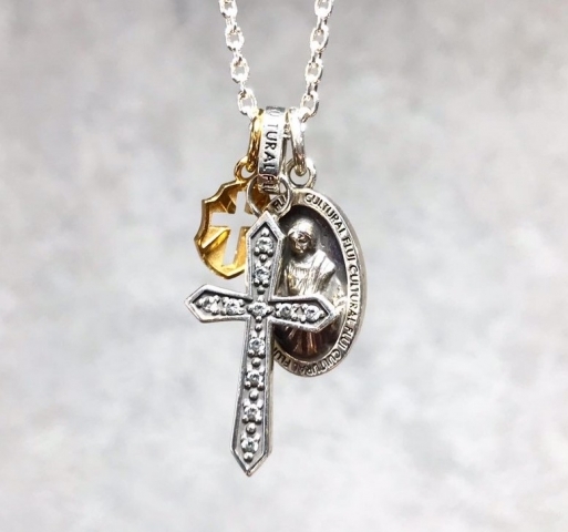 コインペンダントのマリアは繊細な彫金が施されて立体的なデザインが目を惹きます。