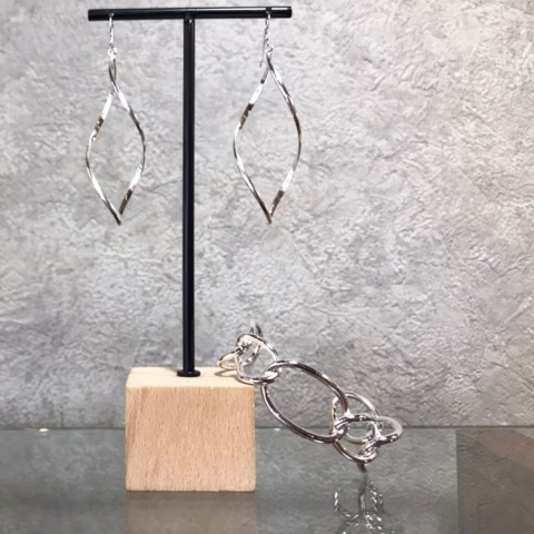 軽やかに揺れる大きめのリーフデザインが目を惹くフックピアス。