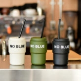 NO BLUE “TUMBLER”は、男女問わず使えるシンプルかつスタイリッシュなデザインもさることながら、その機能性も◎。樹脂製で小ぶりなタンブラーは軽く、持ち運びにもとても便利で、落としてもほとんど割れる心配もありません。本体は二重構造設計のため、ペーパースリーブの必要もなし、保温保冷効果も感じられます。