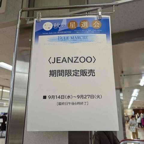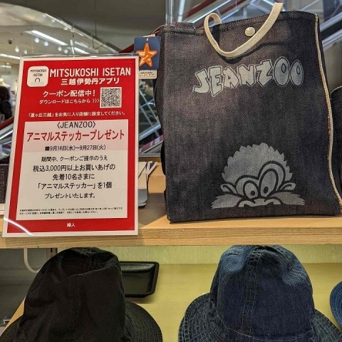 本日より、愛知県の星ヶ丘三越にて『〈kojima market place & JEANZOO〉期間限定販売』を開催致しております。