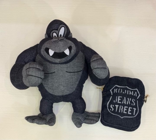 お店のメインキャラクターのインディゴリラの人形と児島店限定のジーンズストリート柄のシガレットケースです( ´ ▽ ` )