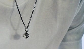 小ぶりなペンダントに重厚感のある燻しチェーンを合わせる事で