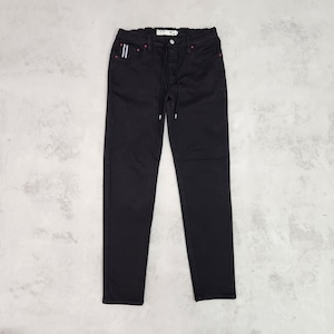 前作のBMXジーンズと同様に伸縮性に優れたオリジナルデニム生地を使用し、腰周りはゴムを採用。リベットは使わず、日の丸をイメージした赤い刺繍もそのままです。