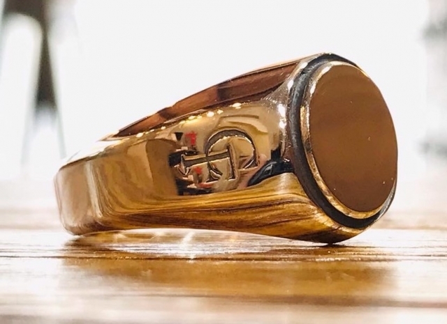 丸みのあるフォルムが特徴的な印台リング。
