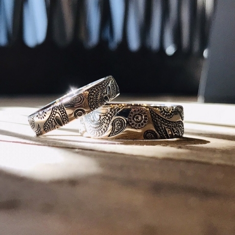 ペイズリー柄の模様の中にはさりげなくハートが刻まれ、