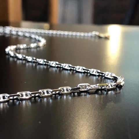 カッティングとコマ中央の棒が特徴的で、デザイン性の高いロロマリーナチェーン。