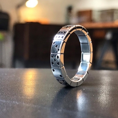 ダイスの目には丸のかわりにトランプマークを彫金しています。