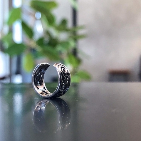 全体に彫金された緻密なヴァイン模様が特徴的なイヤーカフです。