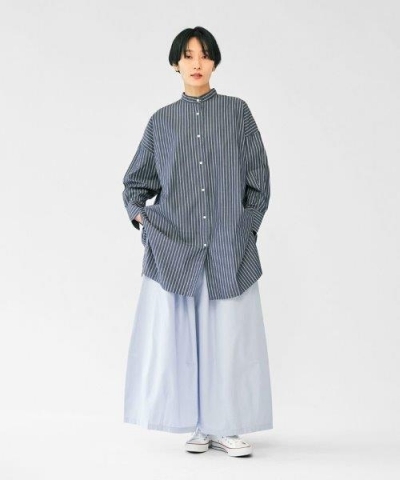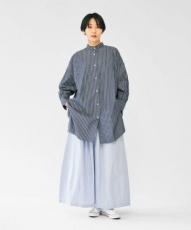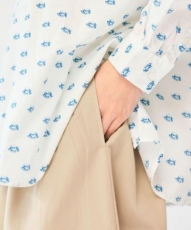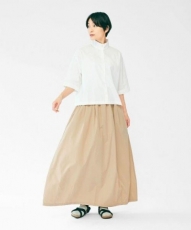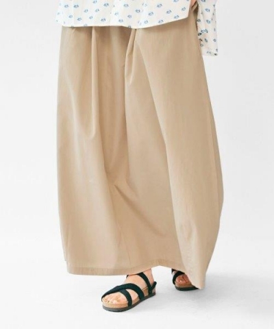 ウエストにしっかりとしたタックがあり、裾にもダーツが入っているため、広がりすぎず、ソフトな質感でふんわりとしたエアリー感を演出。