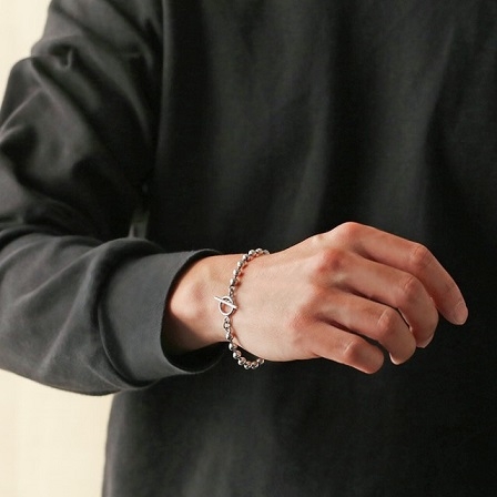 マンテルデザインの留め具がアクセントのボールチェーンブレスレット。
