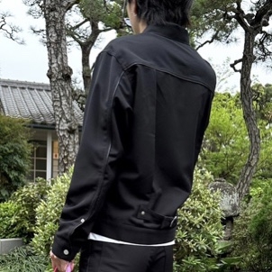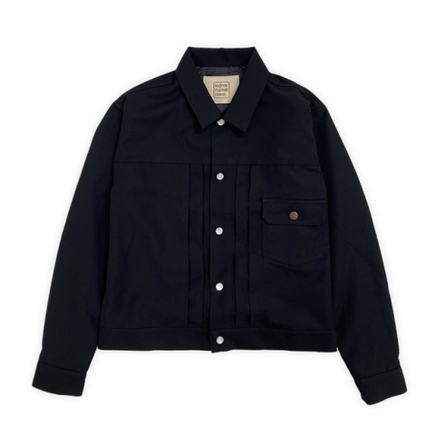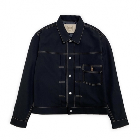 学生服の生地を使用し、1ST TYPE JKTの型を落とし込みスパン糸で縫い上げた