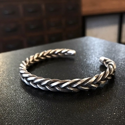 捻じるように編み込まれたシルバーがしっかりとした立体感と、無骨なワイルドさを演出してくれます。