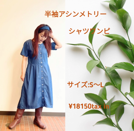 半袖アシンメトリーシャツワンピ