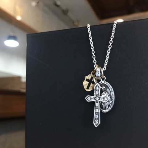 コインペンダントのマリアは繊細な調金が施され立体的なデザインが目を引きます。