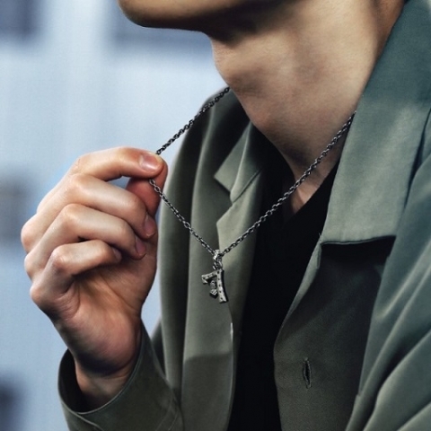 重厚感ある燻しチェーンを合わせることで、ポップすぎないクールな印象に。