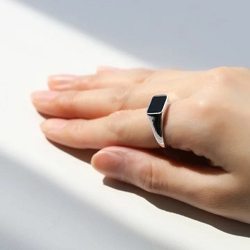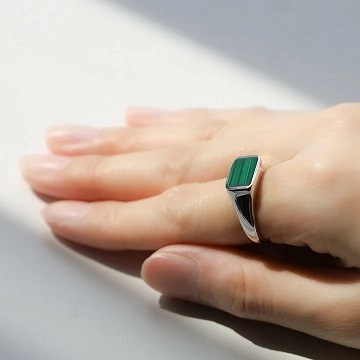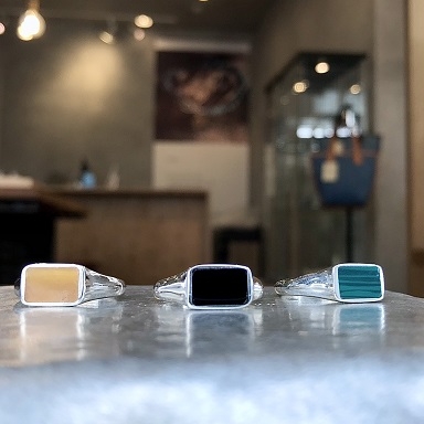 オニキス(中央)、タイガーアイ(左)、マラカイト(右)の3種類の天然石を使った細めのシグネットリング。