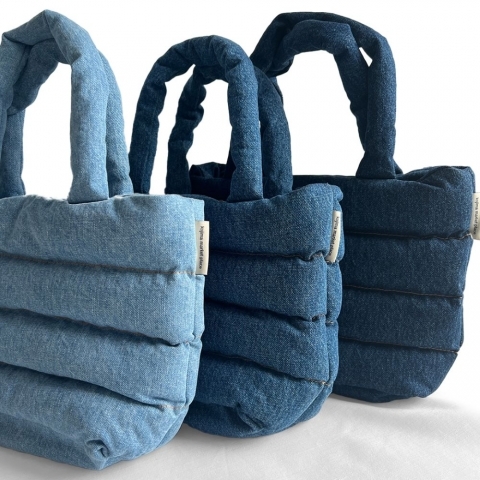もこもことした形がかわいいデニムのトートバッグ