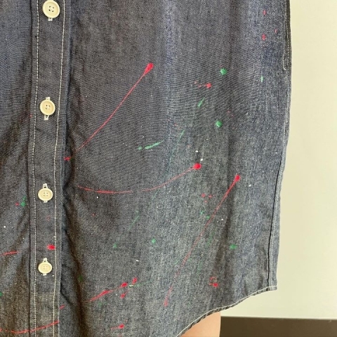 デニムシャツワンピース カラフルペンキ