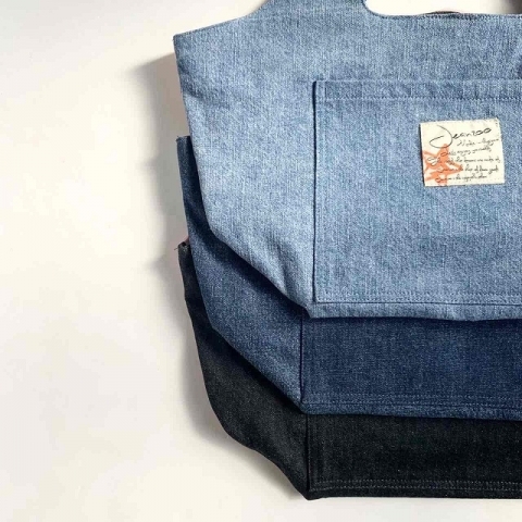 『デニム×帆布底板付バケツ型トート』