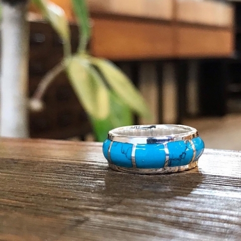 リング表面に長方形のターコイズが埋め込まれています。