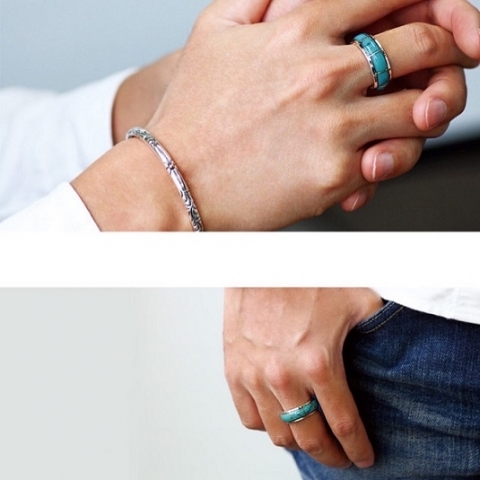 シンプルなボーダー柄のデザインとターコイズの清涼感あるカラーが爽やかな印象を与えてくれるリングです。