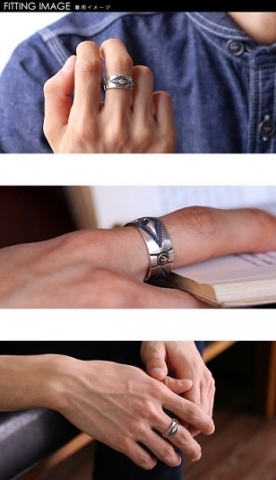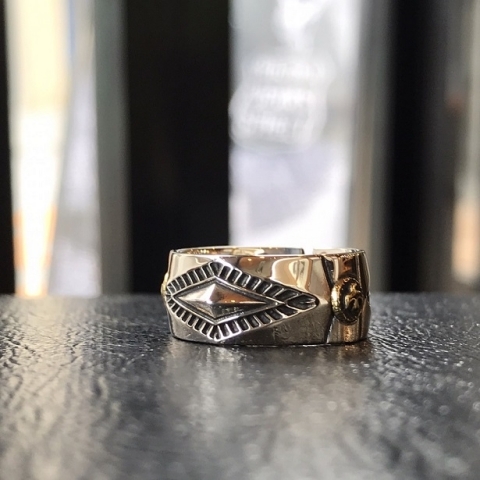 立体的なひし形と、ブラス(真鍮)製のイーグルメタルが交互に配置されたリングです。