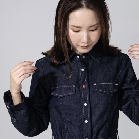 胸元の1つだけ赤いボタンがアクセント!