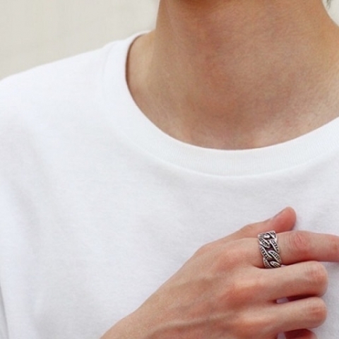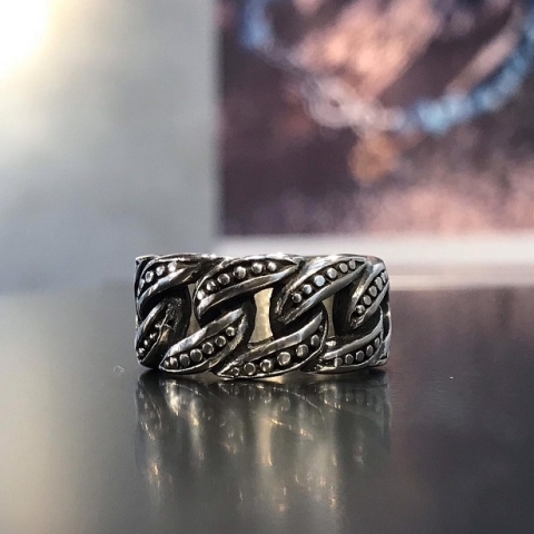 喜平チェーンを模した部分にスタッズのようなデザインを施したリング。