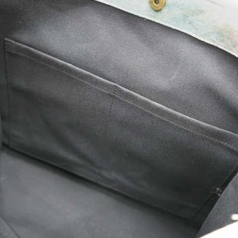 表地には生成の帆布、裏地にはブラックの帆布を使用した型崩れしにくく丈夫なつくり