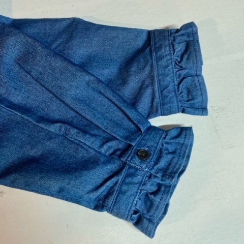 軽くラウンドした衿に、袖口の小ぶりなフリルが可愛いデニムブラウス!