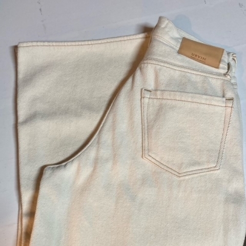 落ち着きのあるキナリカラーのワイドパンツ