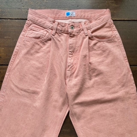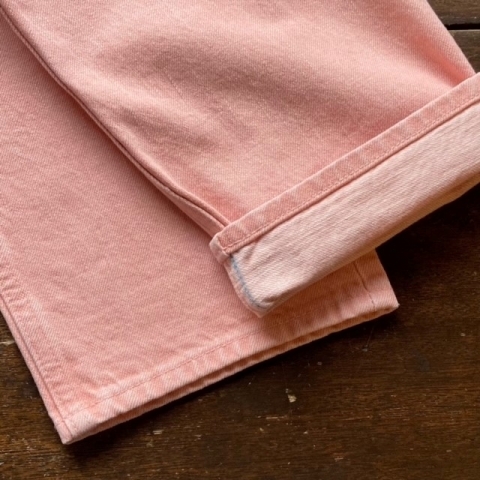 ピンクカラーは製品染めではなく、経糸をピンクカラーに硫化染めした糸を使用しています。